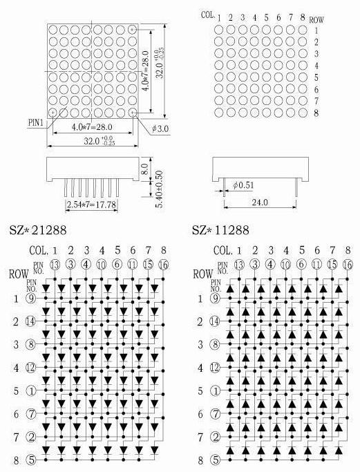 - 描述:3mm 8*8點(diǎn)陣共陽