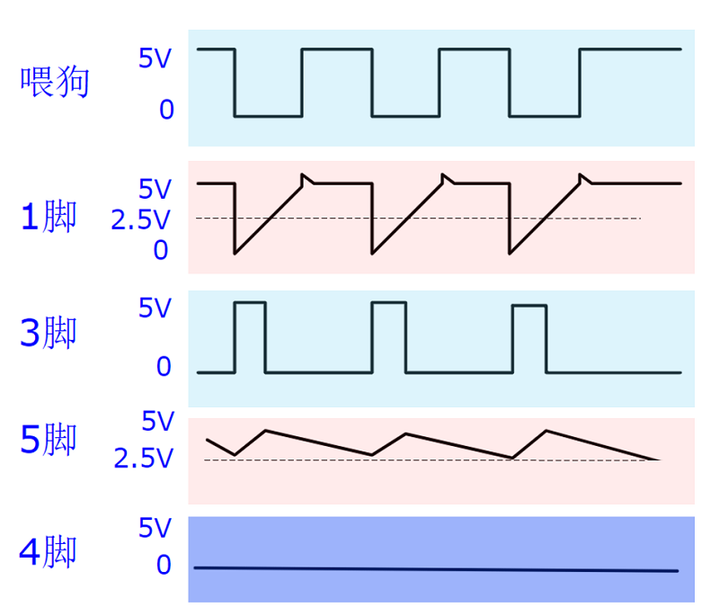 我們需要操作的是在電容C放電至閾值的時(shí)間段內(nèi)給第1引腳一個(gè)低電平,也就是喂狗操作,保證第4引腳持續(xù)輸出低電平,這樣就實(shí)現(xiàn)了看門狗對(duì)電路的監(jiān)控功能。如圖9.