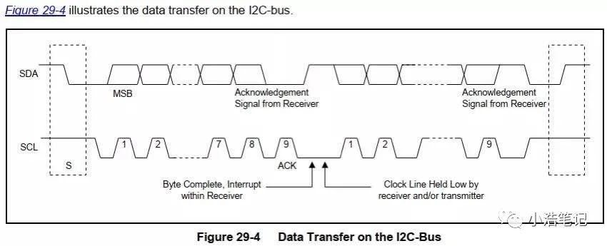 數(shù)據(jù)傳輸格式:SDA線上傳輸?shù)拿總字節(jié)長度都是8位,每次傳輸中字節(jié)的數(shù)量是沒有限制的,在起始條件后面的第一個字節(jié)是地址域,之后每個傳輸?shù)淖止?jié)后面都有一個應(yīng)答(ACK)位(即一幀共有9位)。傳輸中串行數(shù)據(jù)的MSB(字節(jié)的高位首先發(fā)送)。