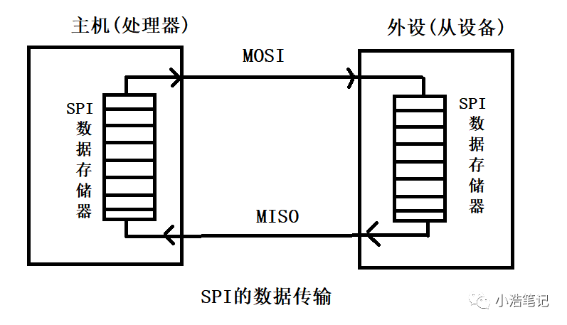 主機和外設都包含一個串行移位寄存器,主機通過它的SPI串行寄存器寫入一個字節(jié)來發(fā)起一次傳輸。寄存器是通過MOSI信號線將字節(jié)傳送給外設,外設也將自己的移位寄存器中的內容通過MISO信號線返回給主機。這樣,兩個移位寄存器中的內容就被交換了。外設的寫操作和讀操作是同步完成的,因此SPI成為一個很有效的協(xié)議。